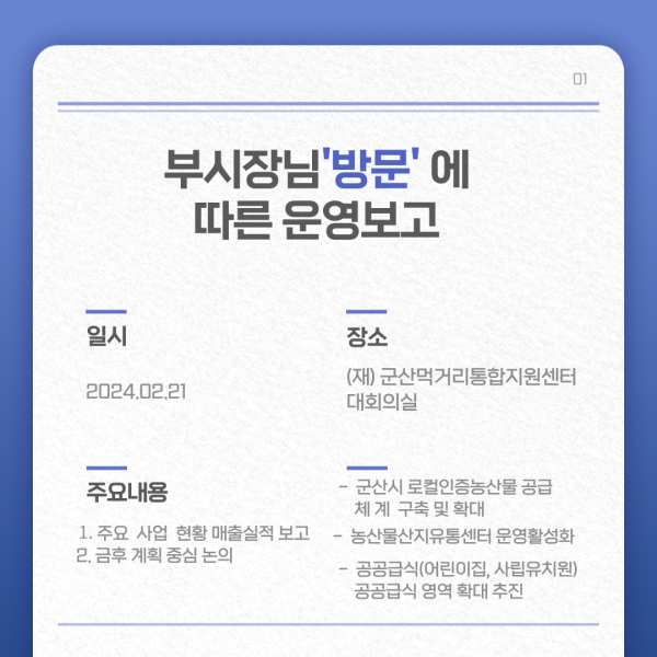 재단법인군산먹거리통합지원센터, 부시장님 재단 방문